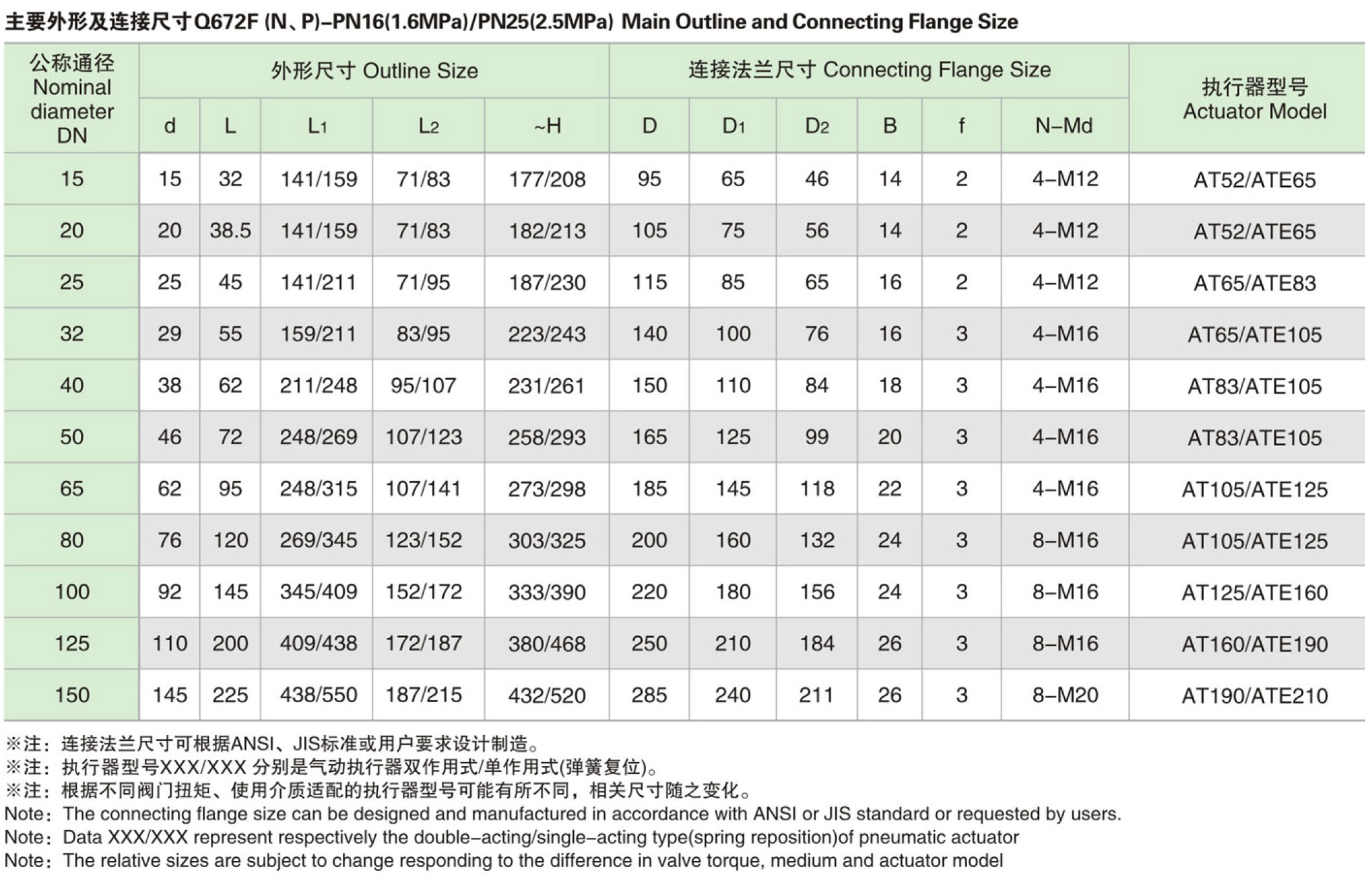 GT氣動(dòng)執(zhí)行器型號(hào)對(duì)照表